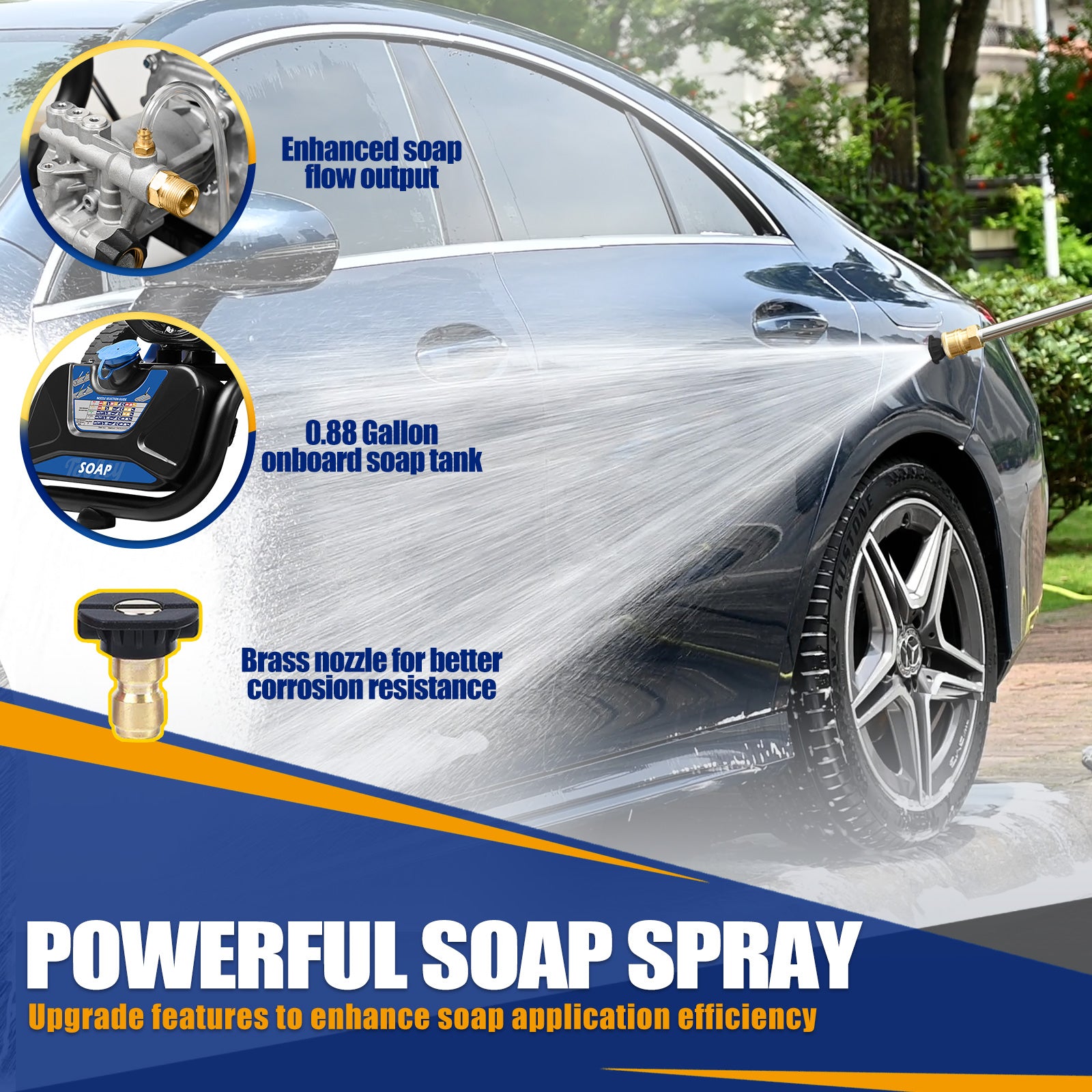Enhanced Soap Application: Maintenance-free axial-cam pump with extended use time and improved soap flow. Includes a 0.88-gallon onboard soap tank for uninterrupted cleaning.
