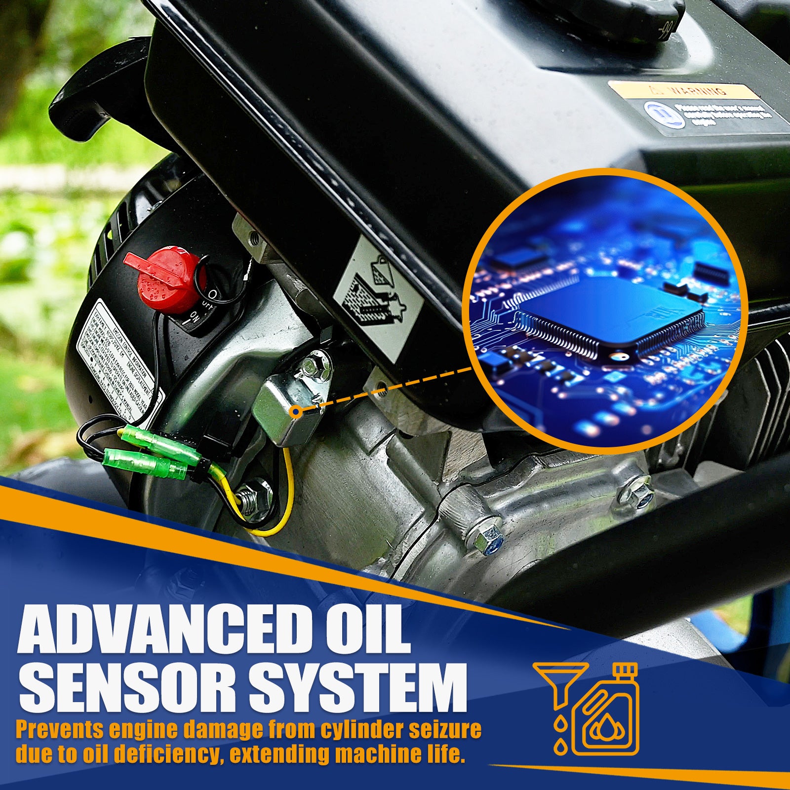 Easy Start & Smart Engine: 212cc OHV engine with recoil start for powerful performance and up to 2 hours of continuous use. Smart oil sensor prevents damage, extending engine life by 24%.
