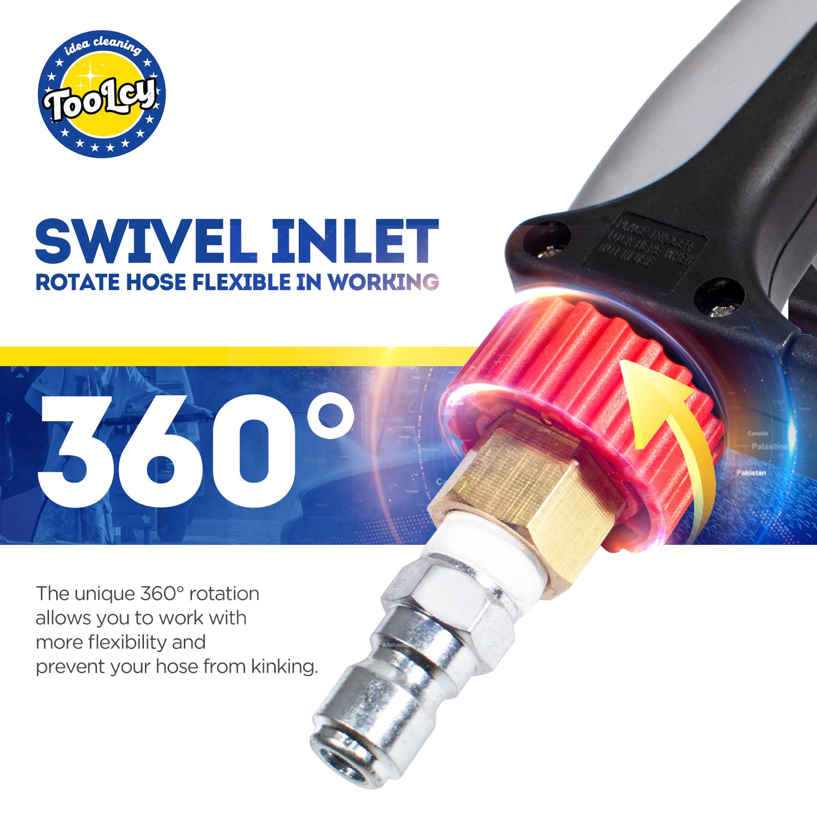 - 360° swivel inlet for flexible rotation, preventing hose tangling.