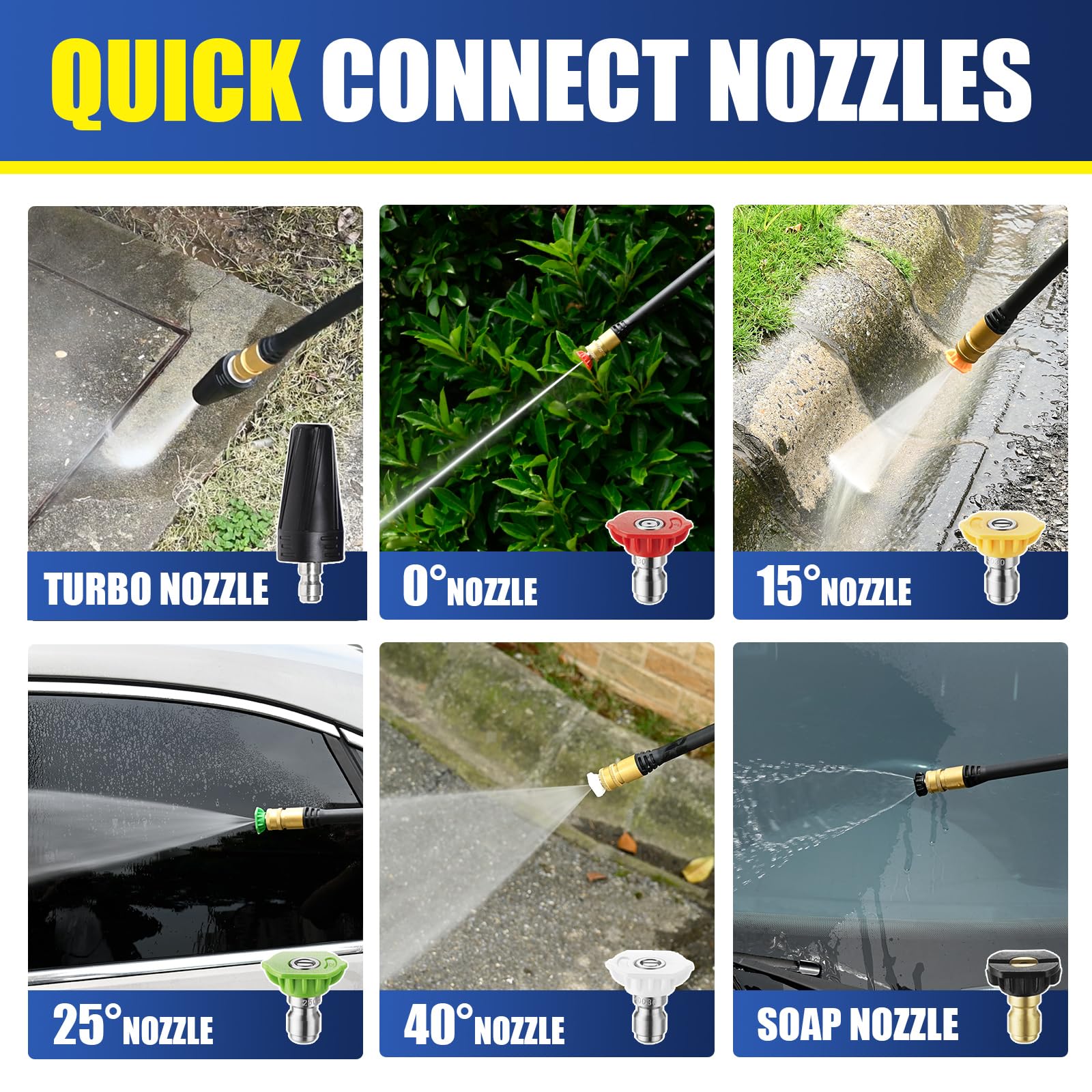 Enhanced Rotating Jet: Turbo nozzle creates a powerful rotating jet to tackle tough grime, grease, and moss for thorough cleaning.