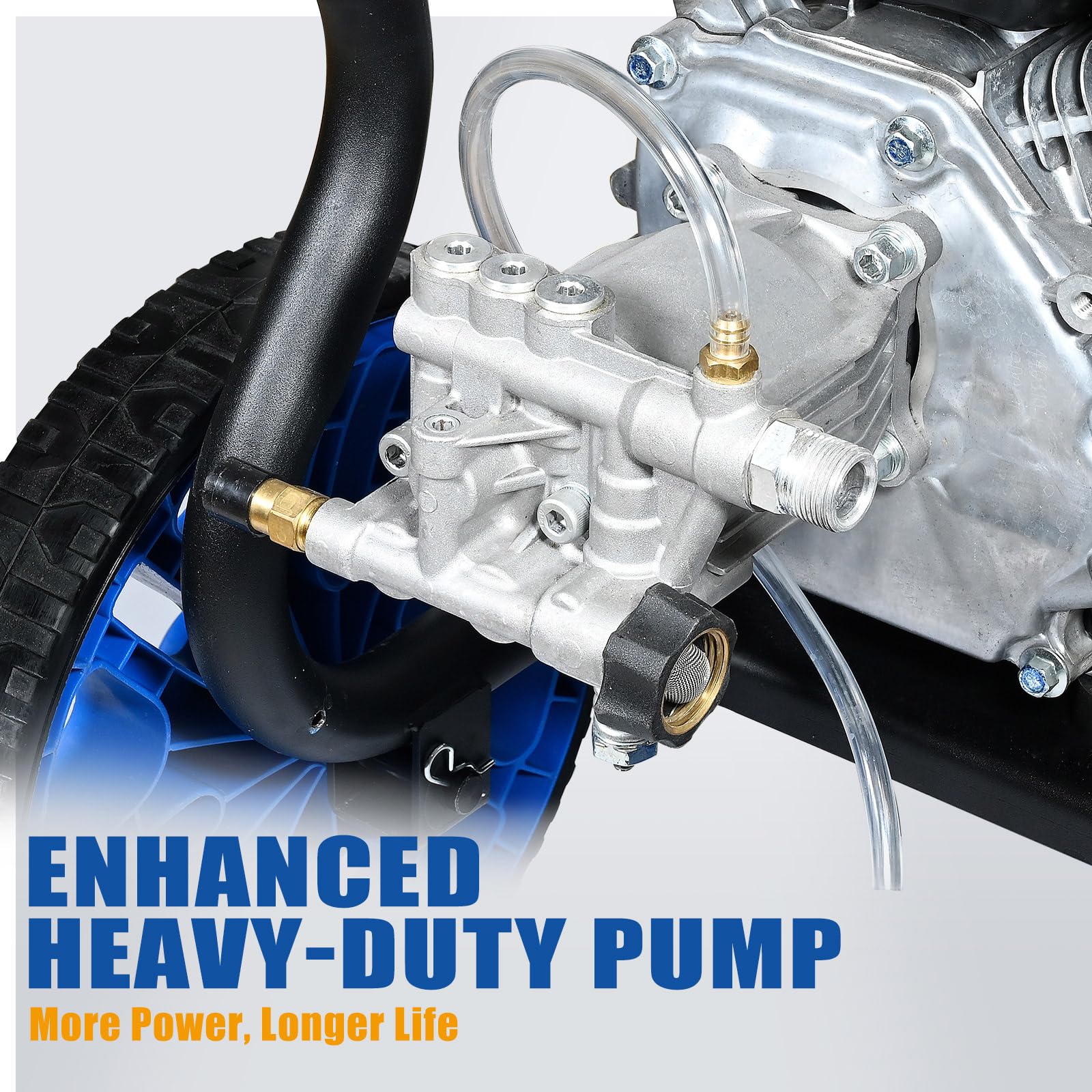 Powerful Cleaning 212cc 4-stroke engine delivers 3400 PSI at 2.8 GPM for tough dirt and grime.