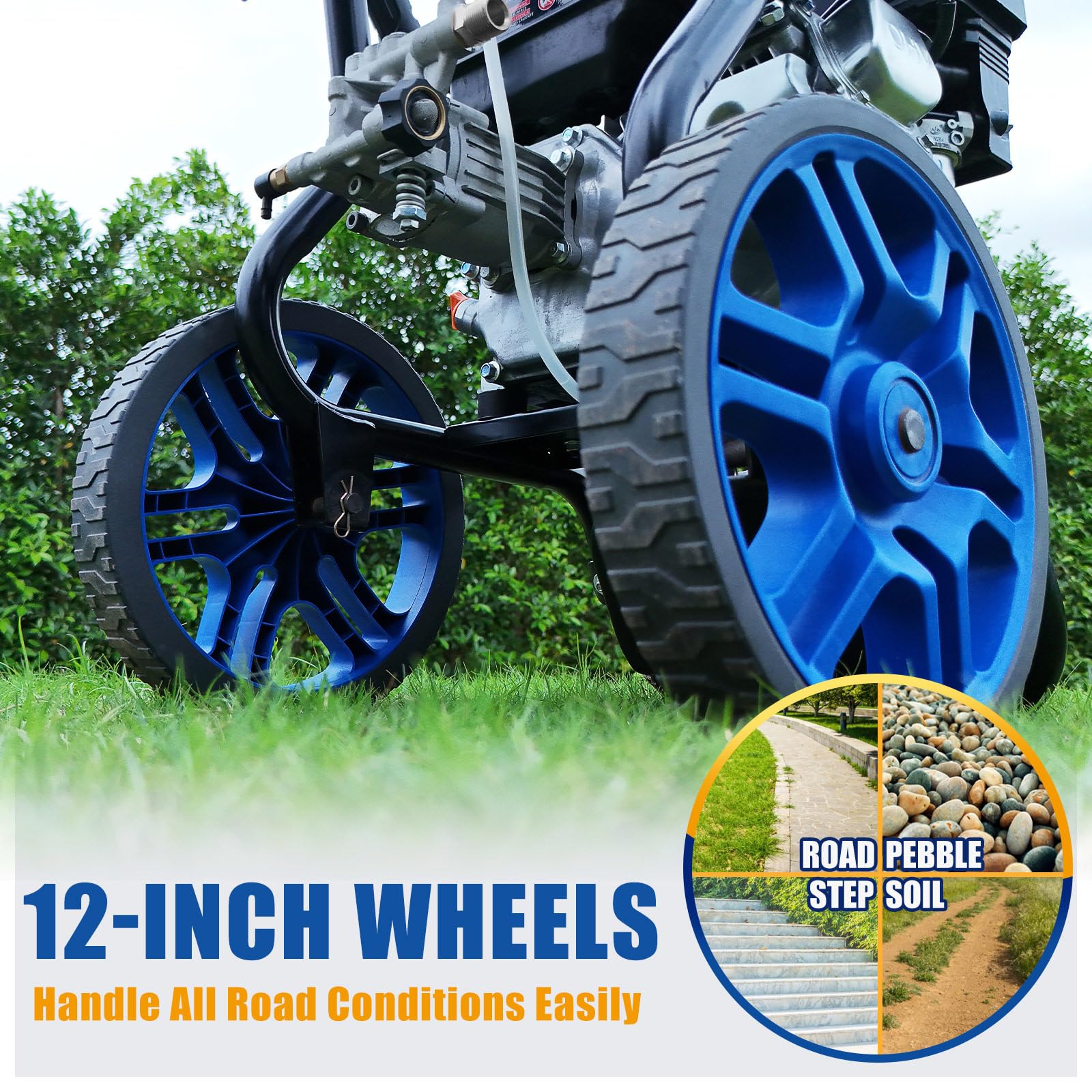 User-Friendly Design Sturdy steel frame, 12" never-flat wheels, and compact storage.